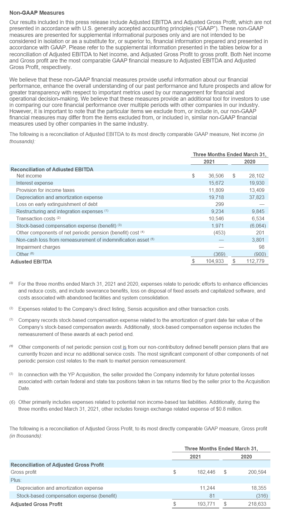 Please note: All GAAP financials now include Sensis for the month of March 2021 only.